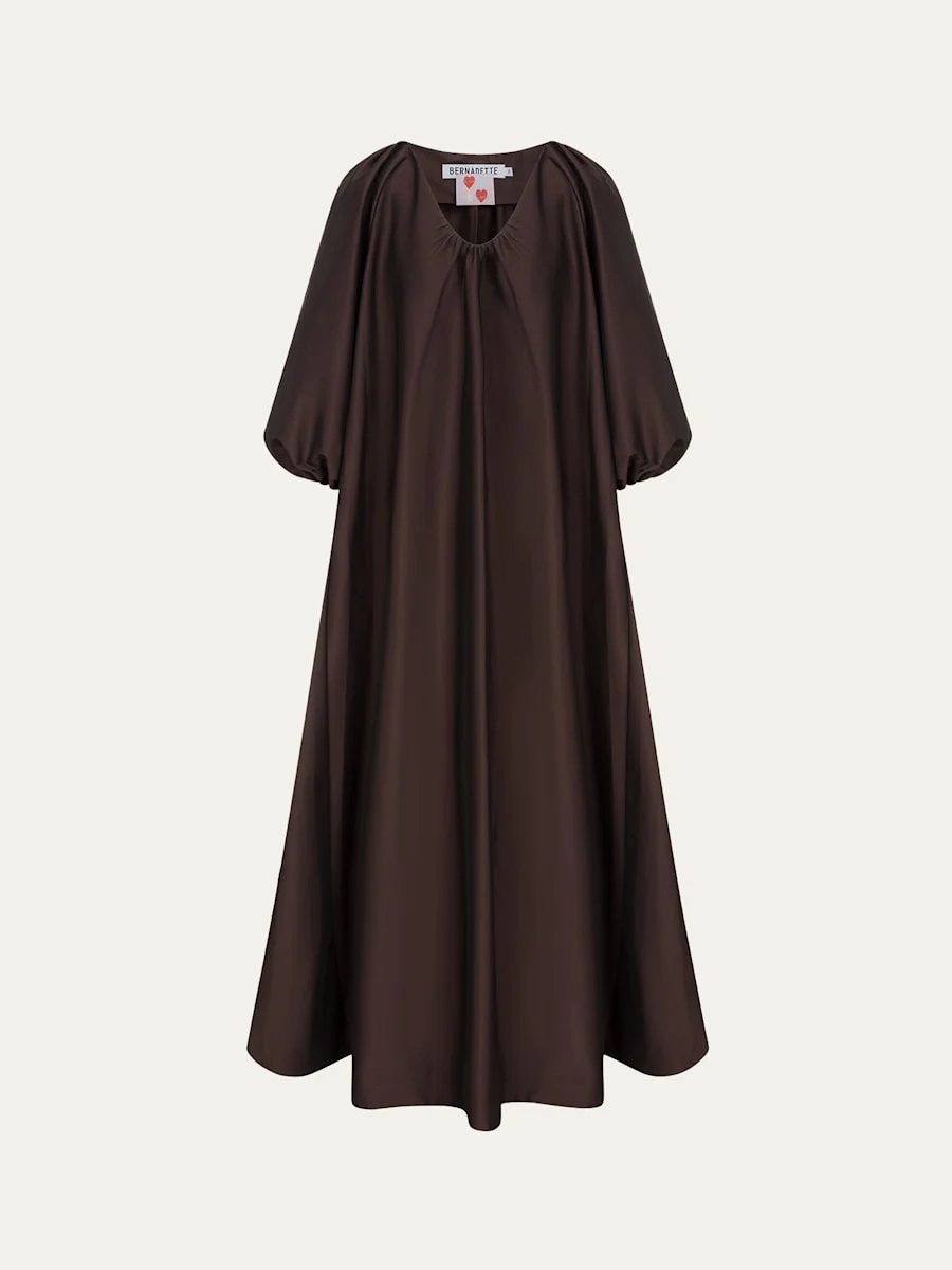 BERNADETTE "George" dress is a timeless statement crafted in a signature taffeta gathered along the neckline with puff sleeves U neckline Long puff sleeves Shift silhouette Floor sweeping hem Slipover style Polyester/nylon/polyamide/elastane Dry clean Made in Romania Online Inquiries: BGS21_BB0HF| Store Inquiries: #5376761