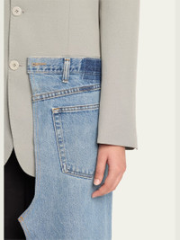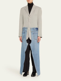 bettter "Denicoat" upcycled vintage jeans and classic blazers coat Notch lapels; button front Long sleeves; approx. 24.0"L Button cuffs Chest pocket Straight fit Long length Cotton Viscose lining Professional cleaning recommended Made in Portugal Online Inquiries: BGS21_B9PQM| Store Inquiries: #4937614