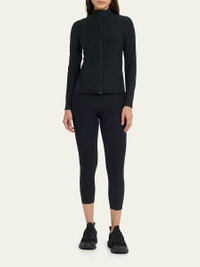 Beyond Yoga "On The Go" jacket in spacedye performance fabric. Moisture-wicking, UV protection, and 4-way stretch. Mock neckline. Long sleeves. Full-zip front. Inseam pockets. Relaxed fit. Polyester/Lycra® Xfit spandex. Imported. Model is 5'10"/177cm. Online Inquiries: BGS21_T4MWF| Store Inquiries: #4046357