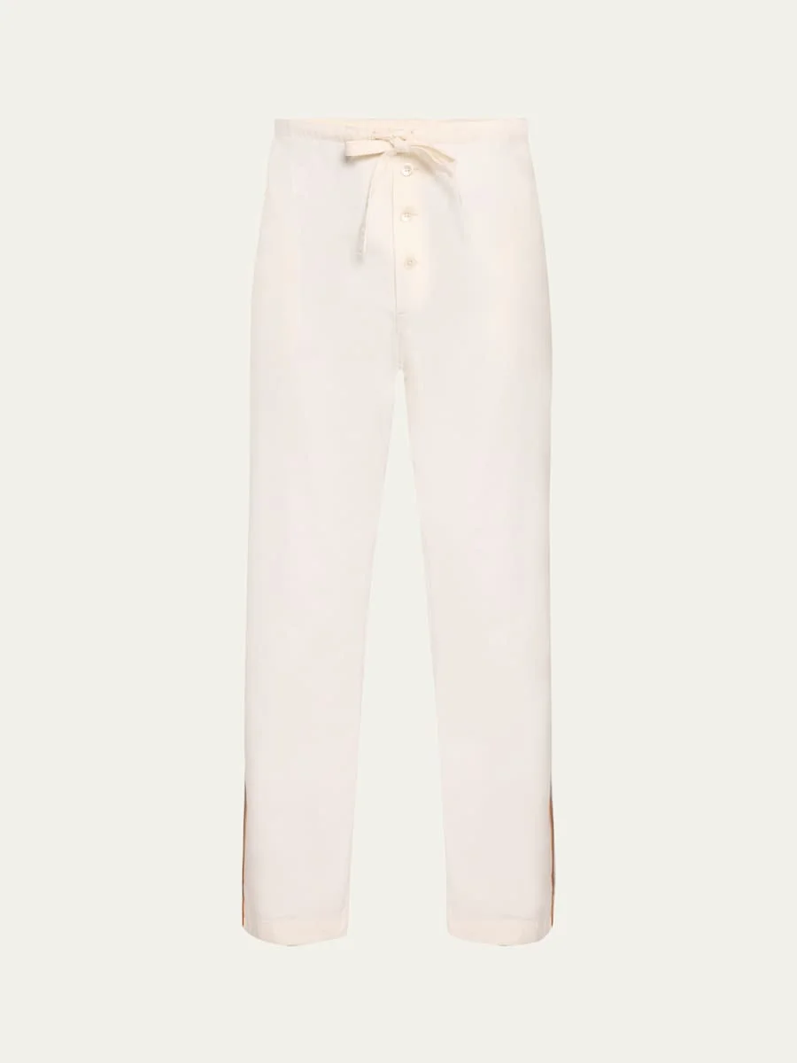 Bode terry pajama pants with retro-inspired stripe details Elasticized waist with drawstring fastening Functional button fly Full length Relaxed fit through straight legs Pull-on style Viscose Imported Online Inquiries: BGS21_NC45Z| Store Inquiries: #4802438