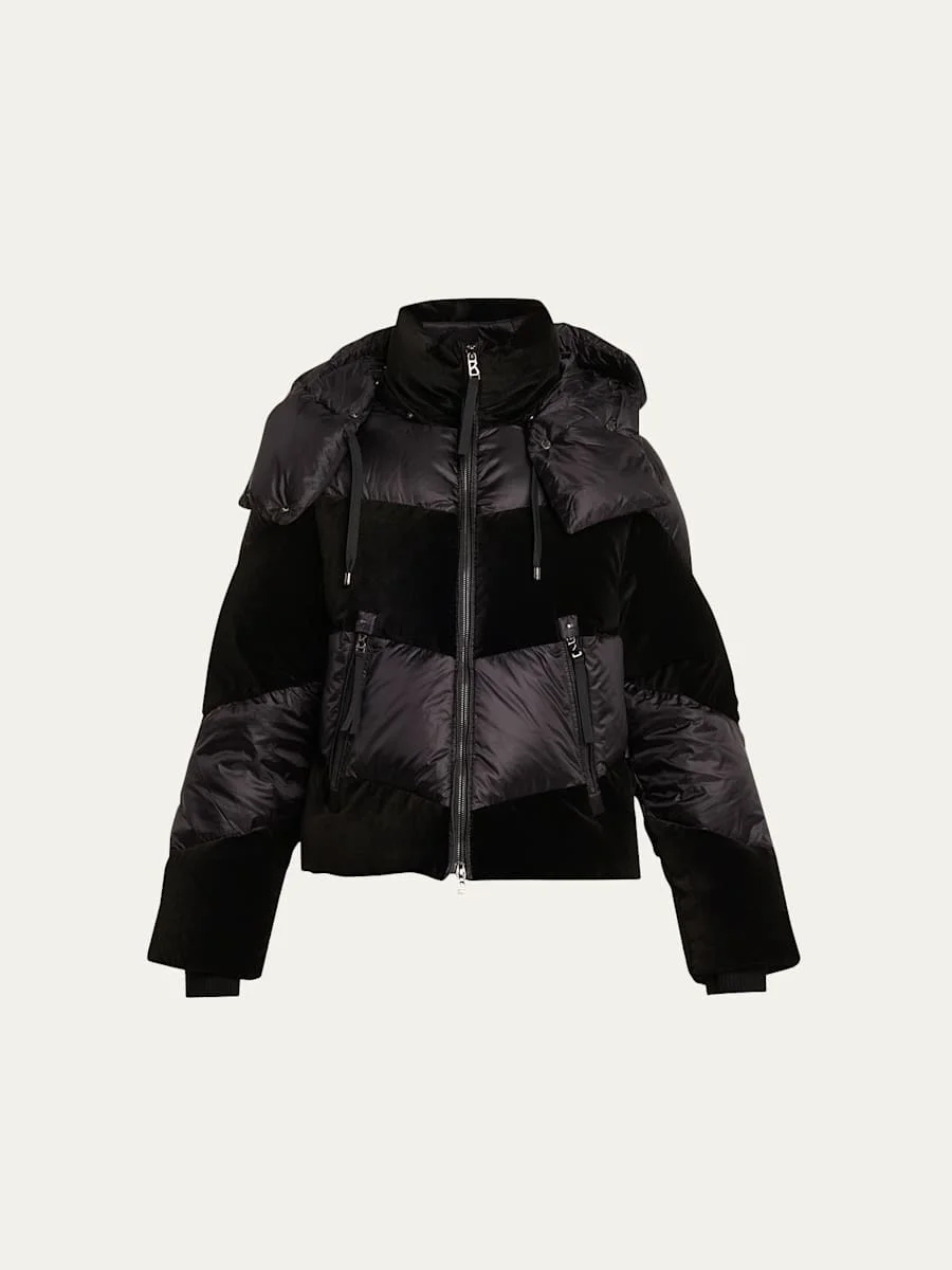 Cathy Nylon & Velvet Down Jacket with Detachable Hood