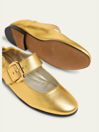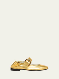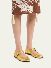 Bottega Veneta "Astaire" soft metallic leather ballerina flats Round toe Mary Jane buckle strap Leather lining Leather outsole Made in Italy Online Inquiries: BGS21_X6X6A| Store Inquiries: #5031222