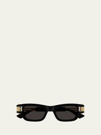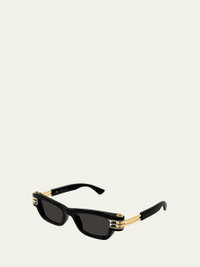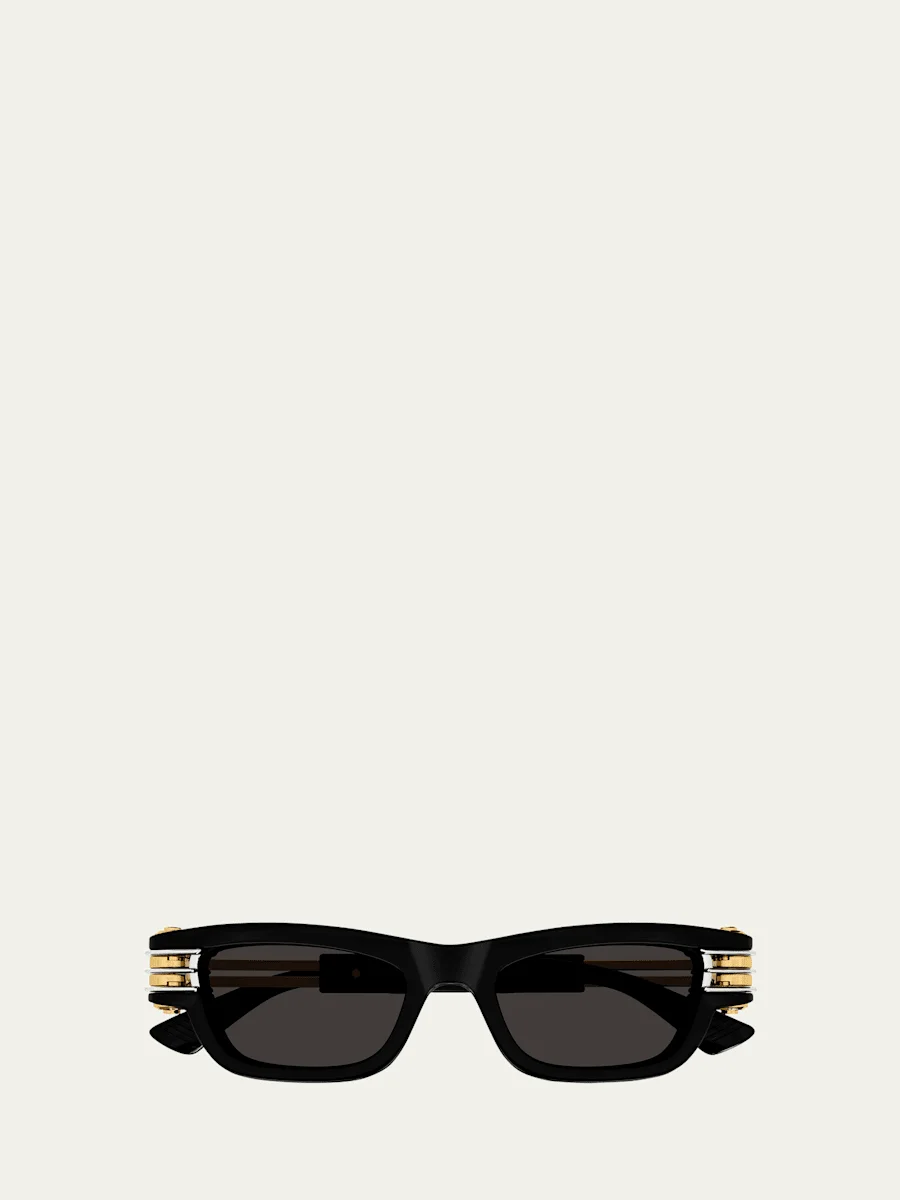 Bottega Veneta "BV1308S Bolt" rectangle sunglasses in plastic and Amni® nylon Lens/bridge/temple (in mm): 50-19-145 Solid lenses Saddle nose bridge Ribbon logo on temples; engraved logo Wide, tapered arms 100% UVA/UVB protection Made in Japan Proposition 65 warning for California residents Online Inquiries: BGS21_D4YB6| Store Inquiries: #4823356