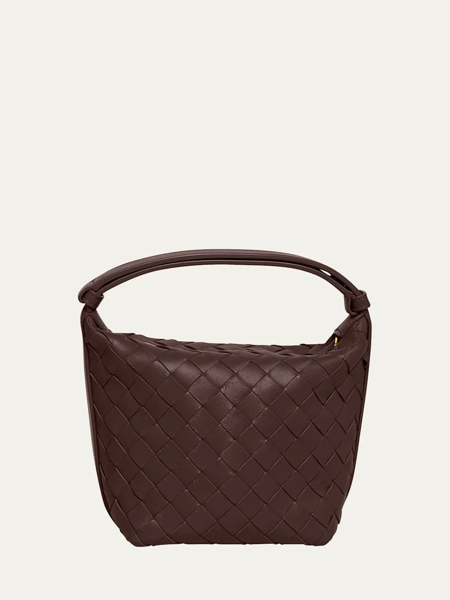 Bottega Veneta "Candy Wallace" top handle bag in intrecciato leather Adjustable top handle Can be worn as a top handle or shoulder bag Zip top closure Approx. 6.7"H x 5.3"W x 4.5"D Made in Italy Online Inquiries: BGS21_V6EG8| Store Inquiries: #4681097