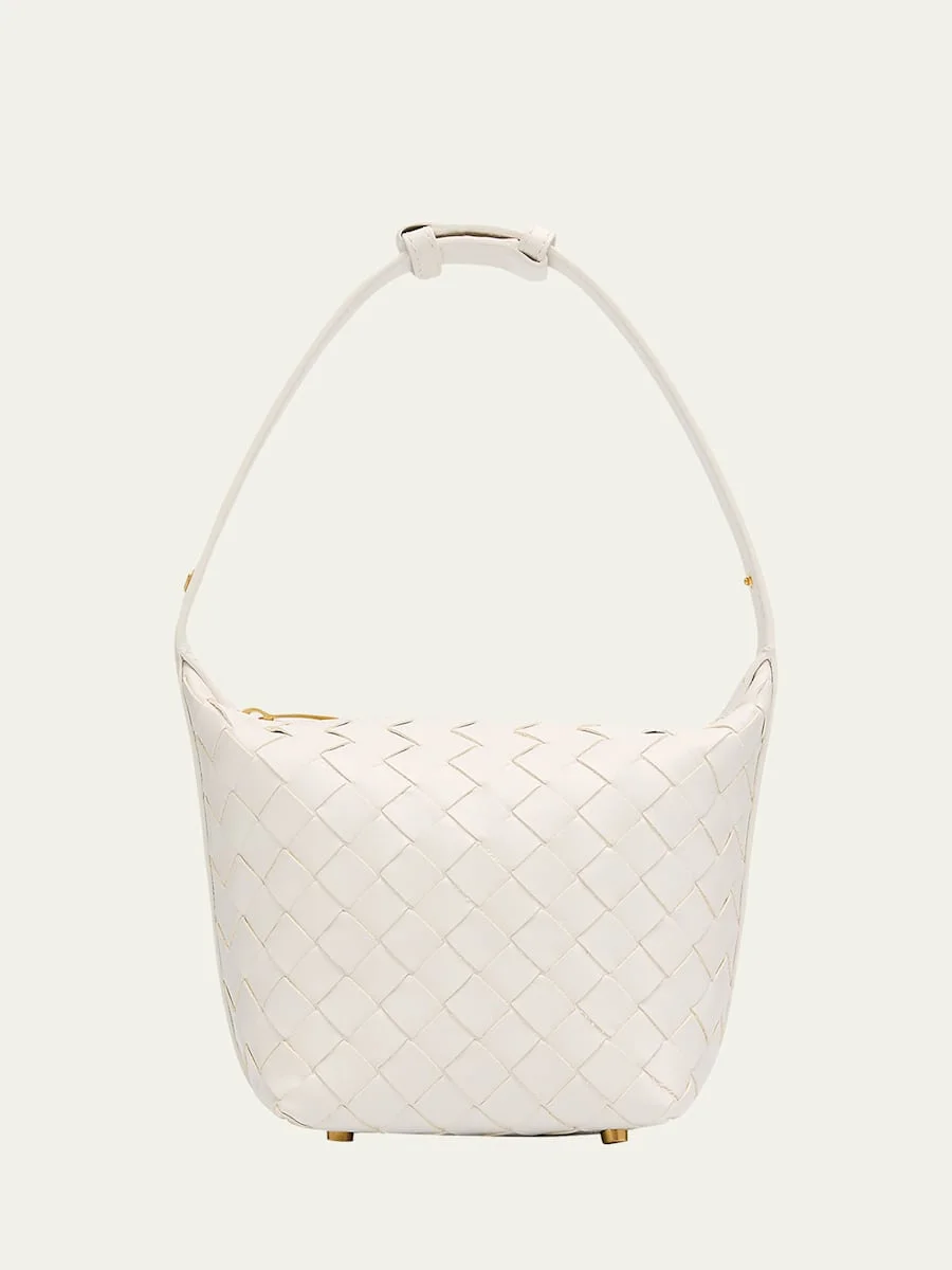 Bottega Veneta "Candy Wallace" top handle bag in intrecciato leather Adjustable top handle Can be worn as a top handle or shoulder bag Zip top closure Approx. 6.7"H x 5.3"W x 4.5"D Made in Italy