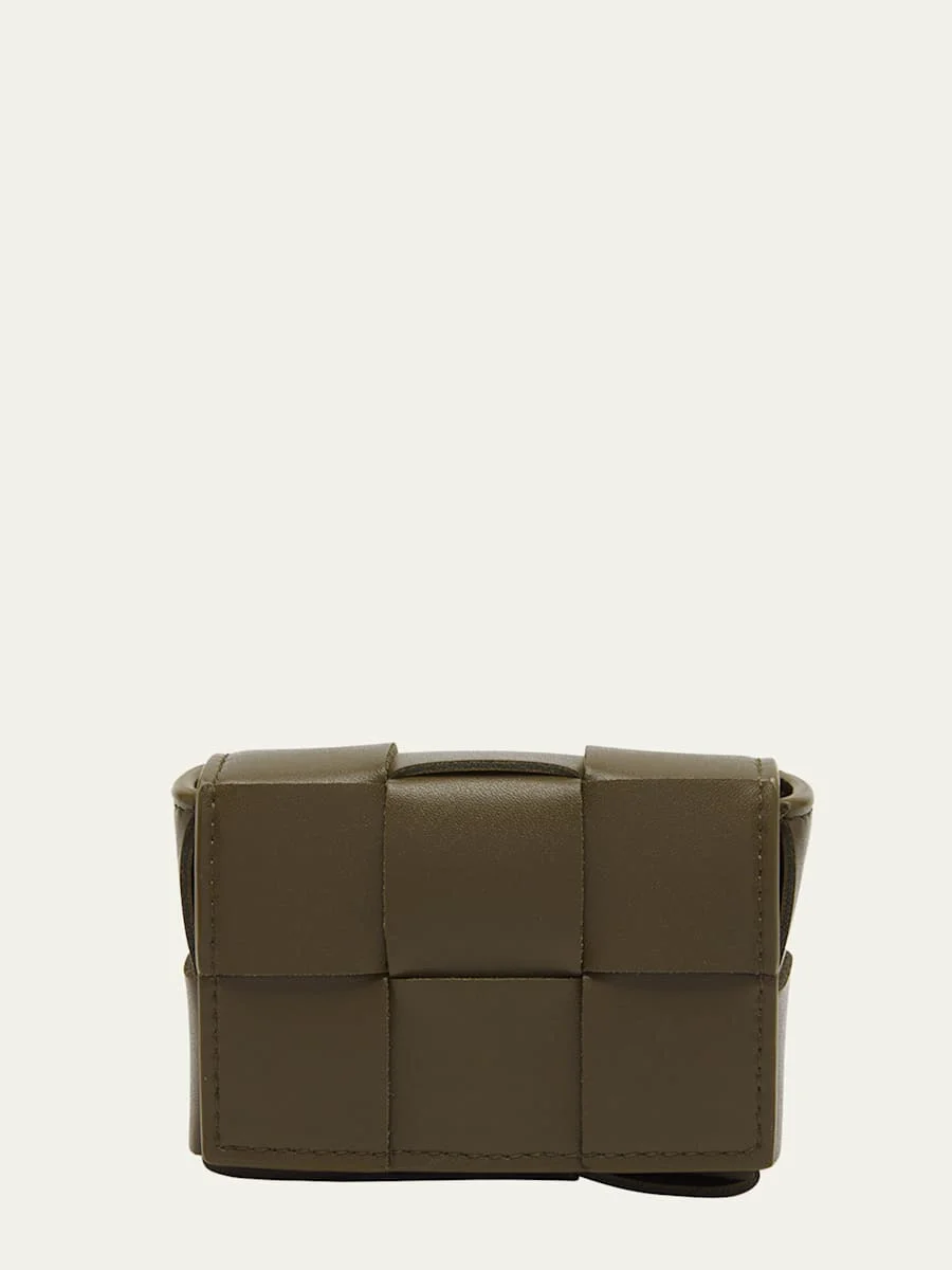 Bottega Veneta "Cassette" AirPods case in intreccio leather Keyring strap Flap top with magnetic closure Approx. 2.4"H x 3.5"W Made in Italy