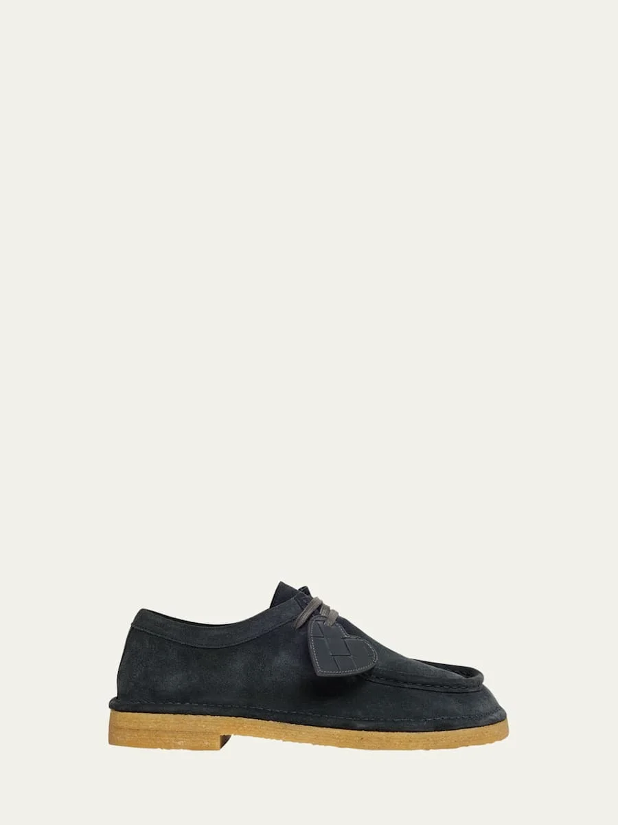 Bottega Veneta booties in rugged suede with detachable intrecciato leather heart charm 0.17 in / 5 mm flat heel Square moc toe Lace-up vamp Rubber outsole Made in Italy Online Inquiries: BGS21_X6X68| Store Inquiries: #5031220