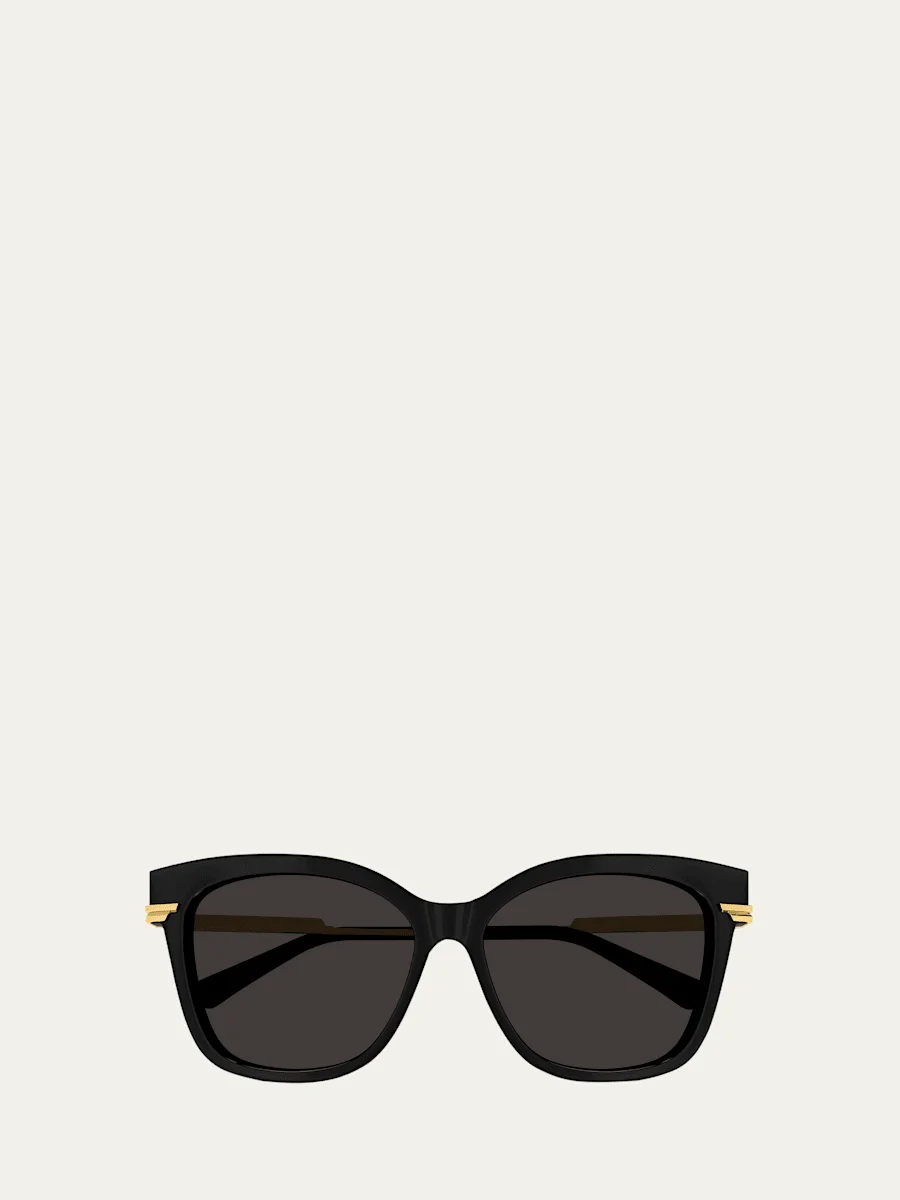 Bottega Veneta "BV1296SA" cat-eye sunglasses in acetate and metal Lens/bridge/temple (in mm): 57-15-145 Saddle nose bridge Logo on temples Thin, tapered arms 100% UVA/UVB protection Made in Italy Proposition 65 warning for California residents Online Inquiries: BGS21_D4UN5| Store Inquiries: #4709996
