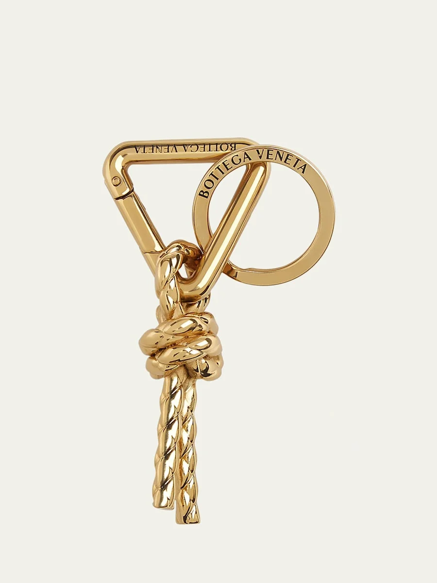 Bottega Veneta knot keychain in brass Approx. 4"H x 1.1"W Clasp closure and keyring Made in Italy