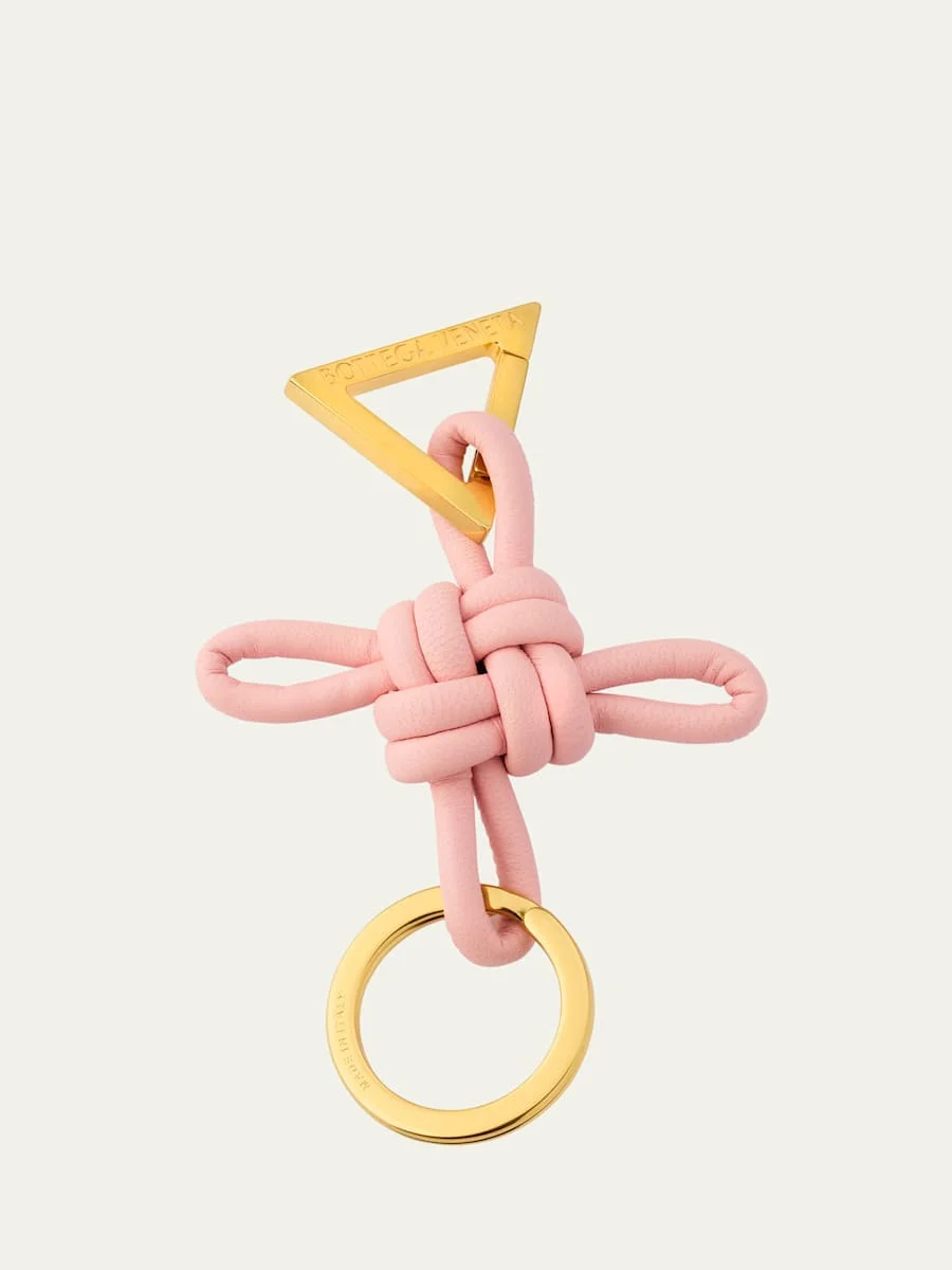 Bottega Veneta knotted key chain in napa leather. Two metal key rings. Approx. 4.5"H x 2.5"W x 0.2"D. Made in Italy.