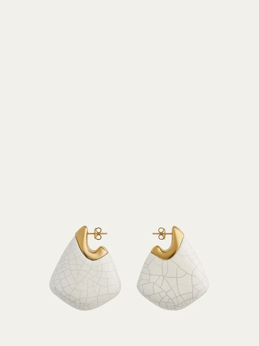 Chalk white ceramic is sculpted into a geometric fin shape for these Bottega Veneta earrings. The subtle veins of the ceramic evoke a craquelure aesthetic. Approx. 2" length x 1.8" width; 0.75" thick Goldtone sterling silver Features a polished finish Ceramic For pierced ears Clean gently with a soft cloth and wash with mild soap and water. Made in Italy
