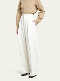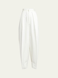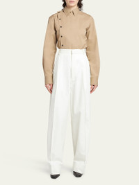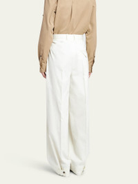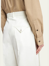 Bottega Veneta light twill trousers with a pintuck front Full length Side slip pockets; back pocket Mid rise sits high on hip Tapered legs Button cuffs Tab/zip fly; belt loops Cotton Made in Italy Model is 5'10"/177cm. Online Inquiries: BGS21_B9AG0| Store Inquiries: #4822946