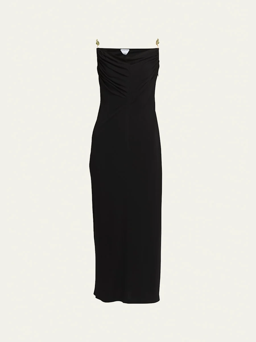 Matte Crepe Jersey Midi Dress with Embellished Hardware Straps