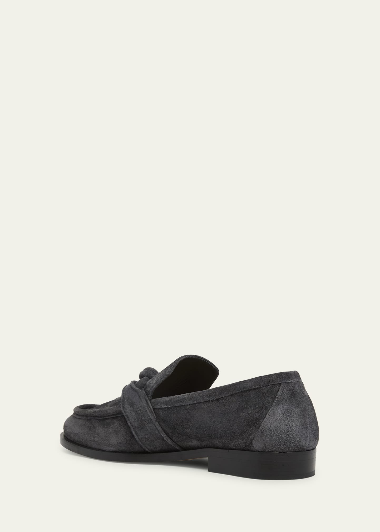 Bottega Veneta loafers realised in soft suede showcasing the signature knot accent Stacked heel Round moc toe Leather lining and outsole Slip-on style Made in Italy Online Inquiries: BGS21_NDEUH| Store Inquiries: #5032739