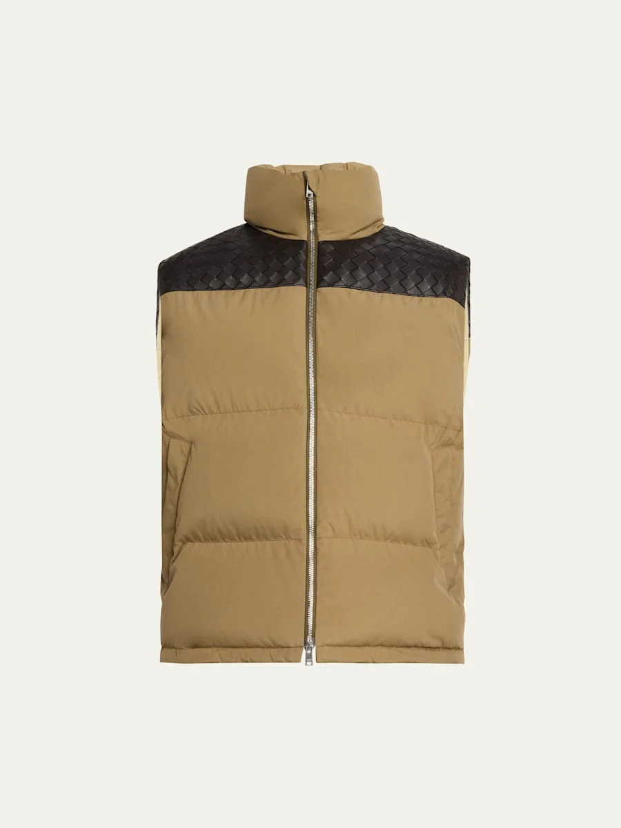 Men's Cotton and Intrecciato Leather Puffer Vest