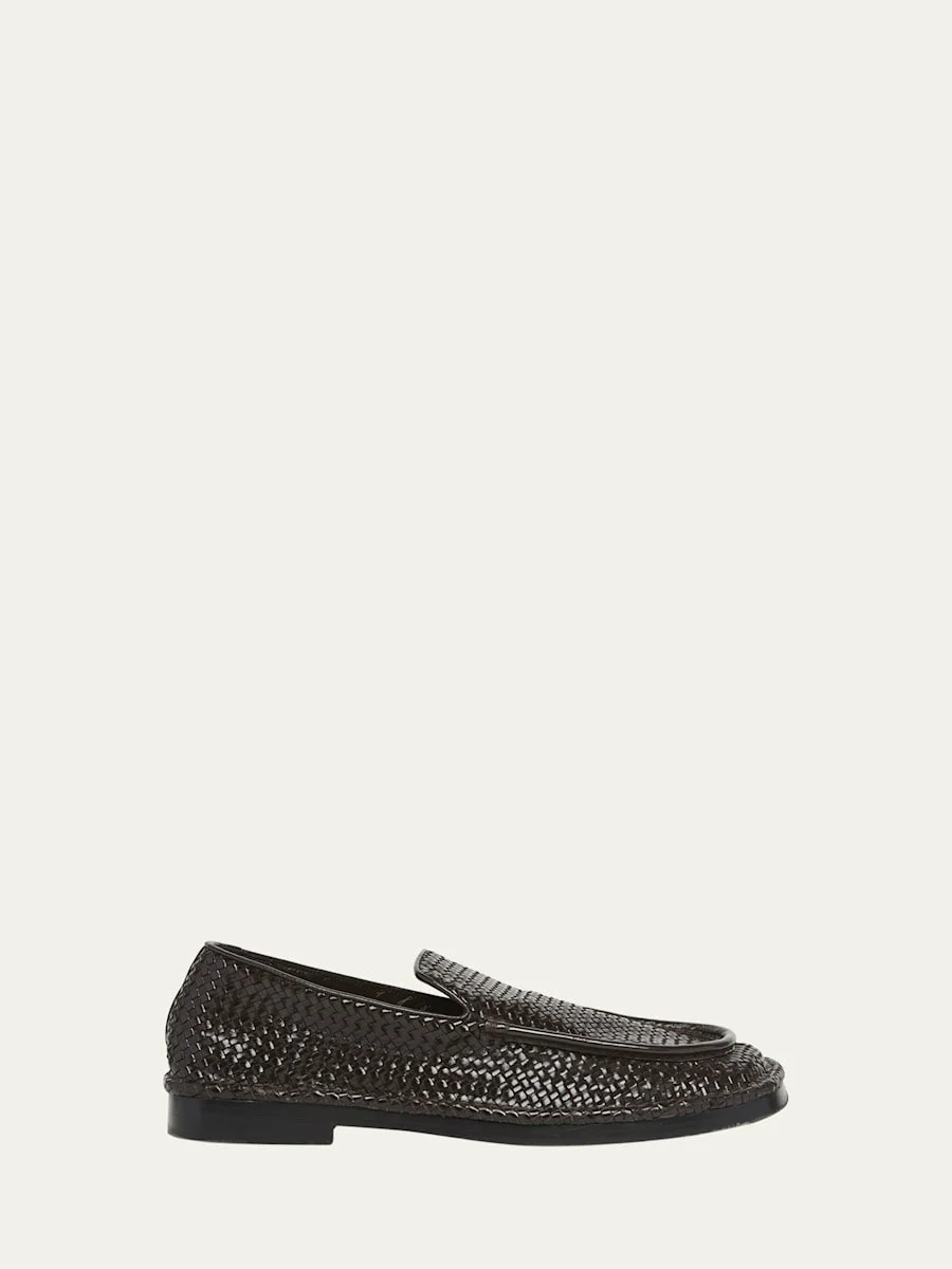 Bottega Veneta "Daddy" loafers in woven shiny leather with intrecciato craftsmanship Stacked heel Squared moc toe Notched vamp Slip-on style Made in Italy Online Inquiries: BGS21_ND1EB| Store Inquiries: #4994558