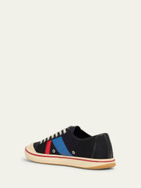 Bottega Veneta "Eliot" low-top sneakers in canvas with leather trims Flat heel Round cap toe Lace-up vamp Tongue with metal triangle motif Logo patch at side Cotton lining Rubber outsole Made in Italy Online Inquiries: BGS21_NDEUP| Store Inquiries: #5032745