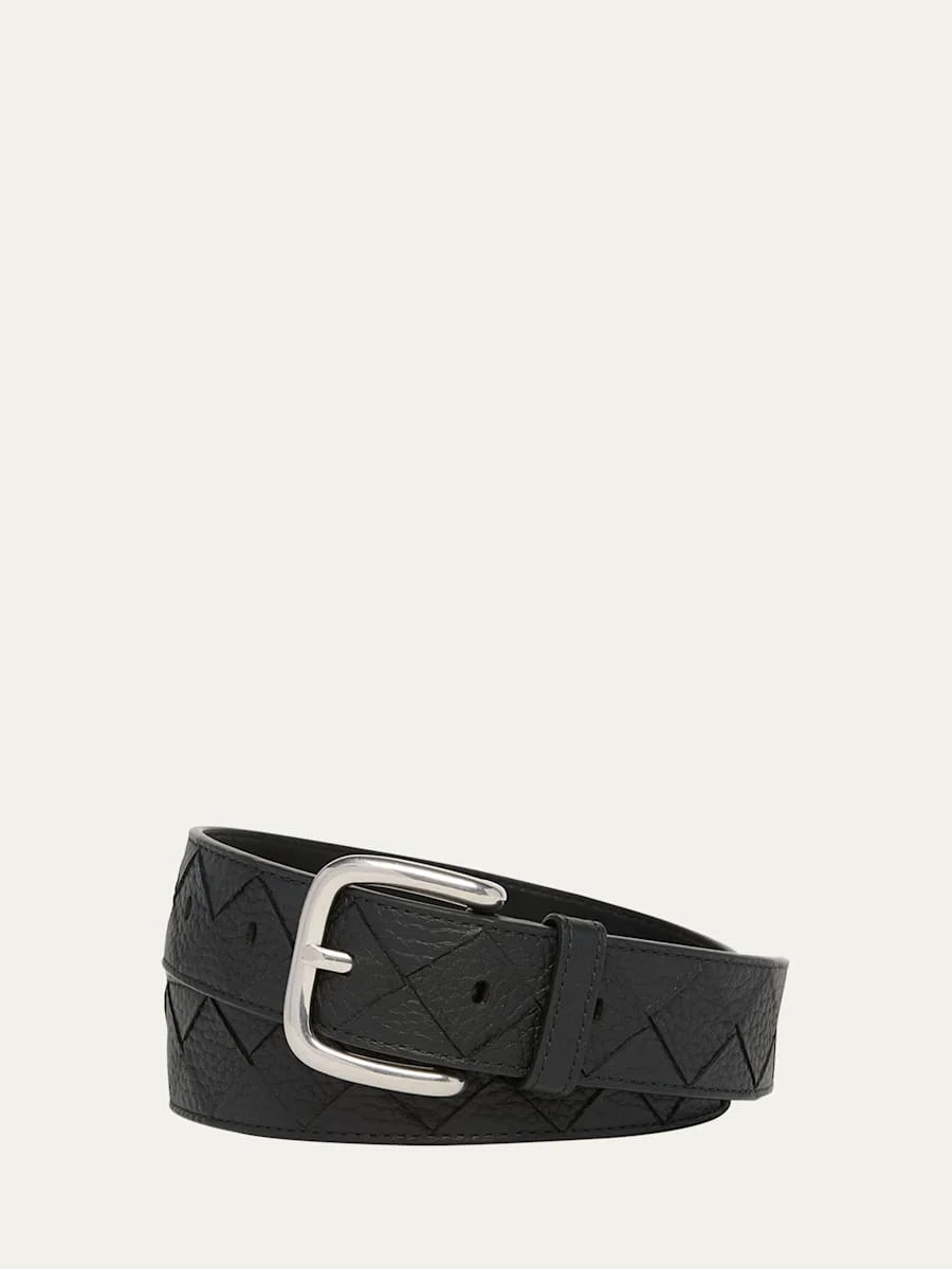 Bottega Veneta belt in Intrecciato calfskin leather Approx. 1.4"W Watch-inspired silvertone pin buckle Leather belt loop Leather Made in Italy Online Inquiries: BGS21_ND1SF| Store Inquiries: #4996859