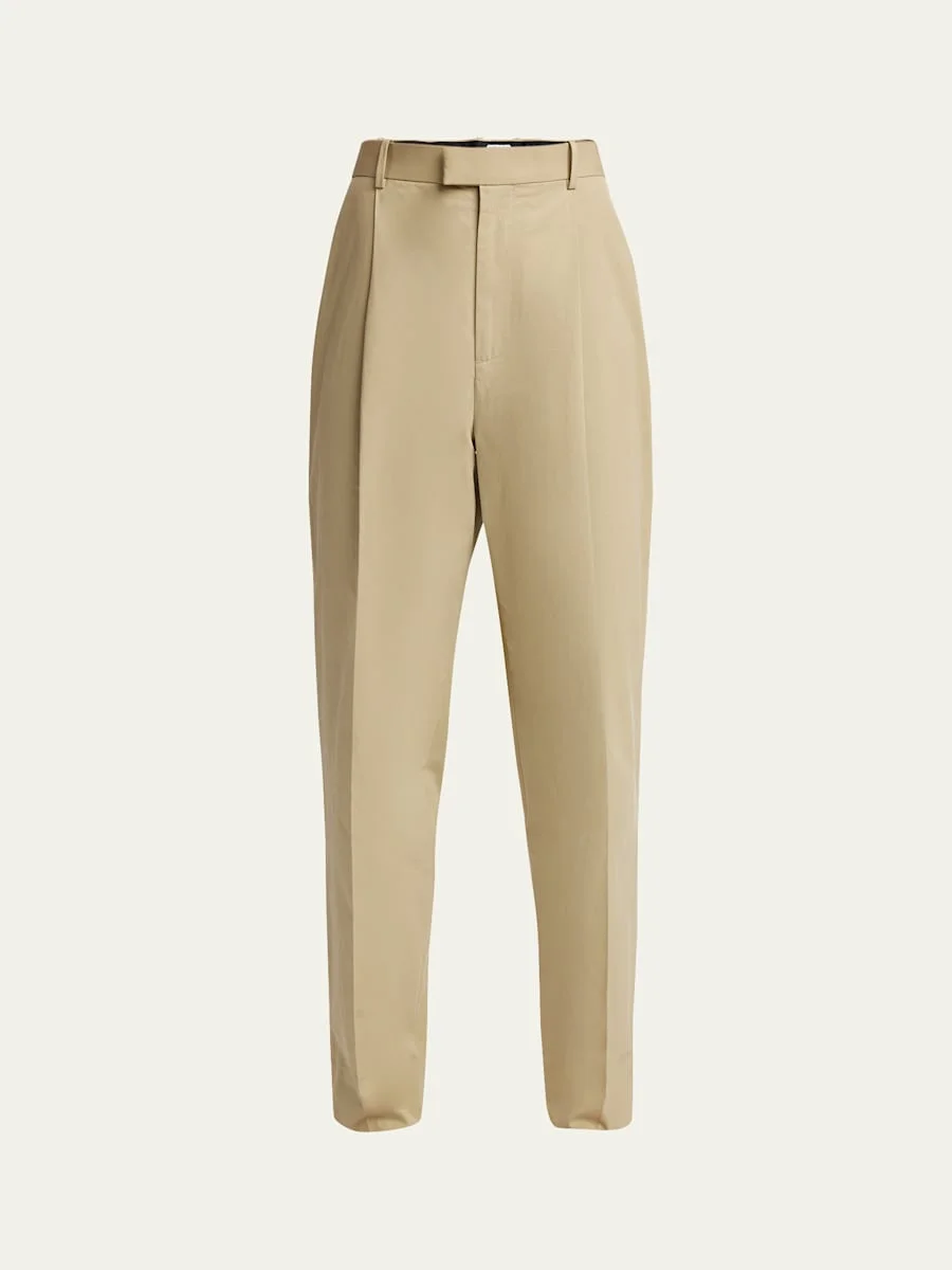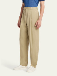 Bottega Veneta trousers in lightweight twill Zip, hook and button closure Pleated front Side seam pockets Single back welt pocket Full length Loose fit through straight legs Cotton Made in Italy Model is 6'1"/185cm. Online Inquiries: BGS21_NCQFH| Store Inquiries: #4928992