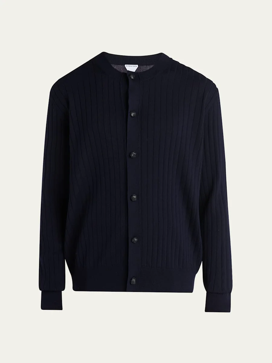 Men's Ribbed Wool Cardigan with Leather Buttons