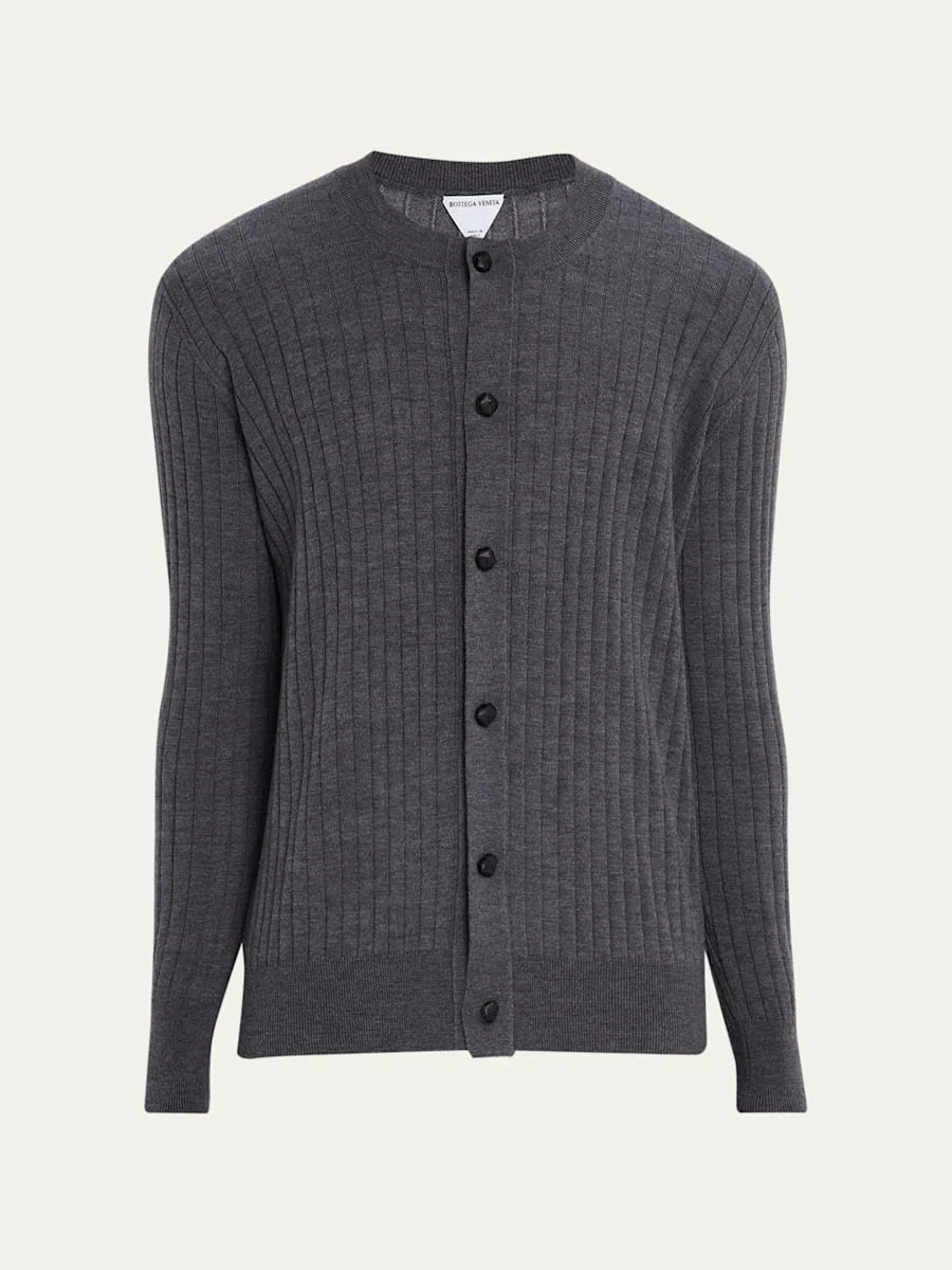 Men's Ribbed Wool Cardigan with Leather Buttons
