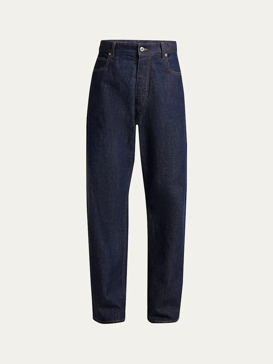 Bottega Veneta pants in soft denim Contrast stitching Regular rise Branded button closure Five-pocket style Full length Loose fit through straight legs Cotton Made in Italy Model is 6'1"/185cm. Online Inquiries: BGS21_NCPVH| Store Inquiries: #4925778