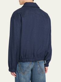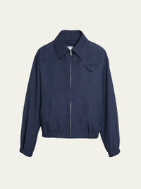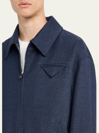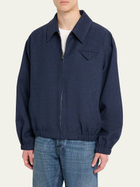 Bottega Veneta blouson jacket in wool drill defined by the iconic triangle motif realized on the chest pocket Point collar Full-zip front Side slant pockets Long sleeves Ribbed cuffs and hem Wool Made in Italy Online Inquiries: BGS21_NDLZJ| Store Inquiries: #5046730