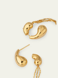 Earrings with two parts; signature drop shape and chain link. Bottega Veneta chain earrings Chain, approx. 10.2"L 18-karat gold-finished sterling silver For pierced ears Made in Italy Online Inquiries: BGS21_Y7HVH| Store Inquiries: #5018280