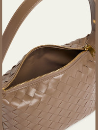 Bottega Veneta "Wallace" mini top handle bag in intrecciato leather Adjustable shoulder strap Zip top closure Feet protect the bottom of the bag Approx. 3.7"H x 9.1"W x 1.2"D Made in Italy