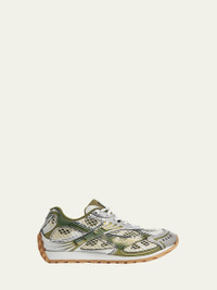 Bottega Veneta "Orbit" faux leather (polyurethane) and lightweight technical mesh runner sneakers Flat heel Round toe Lace-up vamp Cushioned footbed Rubber outsole Sizing: size up recommended Made in Italy Online Inquiries: BGS21_X6CZR| Store Inquiries: #4673795