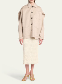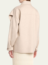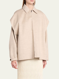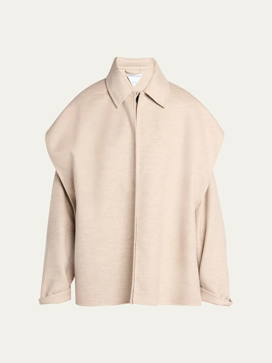 Bottega Veneta light double-face jacket Spread collar Long wide sleeves Dropped shoulders Oversized fit Wool/cashmere Made in Italy Model is 5'10"/177cm. Online Inquiries: BGS21_B8WGT| Store Inquiries: #4671518
