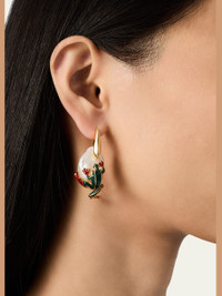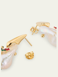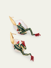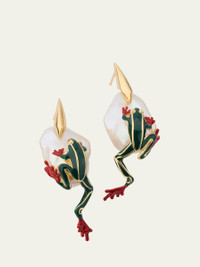 Bottega Veneta "Rana" hand-enamelled earrings 18-karat gold-plated sterling silver Naturally-white freshwater cultured pearls Green and red enameled frogs For pierced ears Made in Italy Online Inquiries: BGS21_Y7HV8| Store Inquiries: #5017940