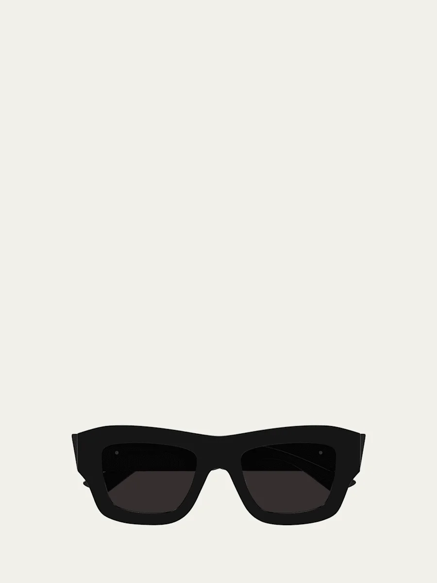 Bottega Veneta "BV1357S" rectangle sunglasses in recycled acetate Eye/bridge/temple (in mm): 50-21-140 Solid lenses Saddle nose bridge Wide, tapered arms 100% UVA/UVB protection Made in Italy Proposition 65 warning for California residents Online Inquiries: BGS21_D54KW| Store Inquiries: #4963774