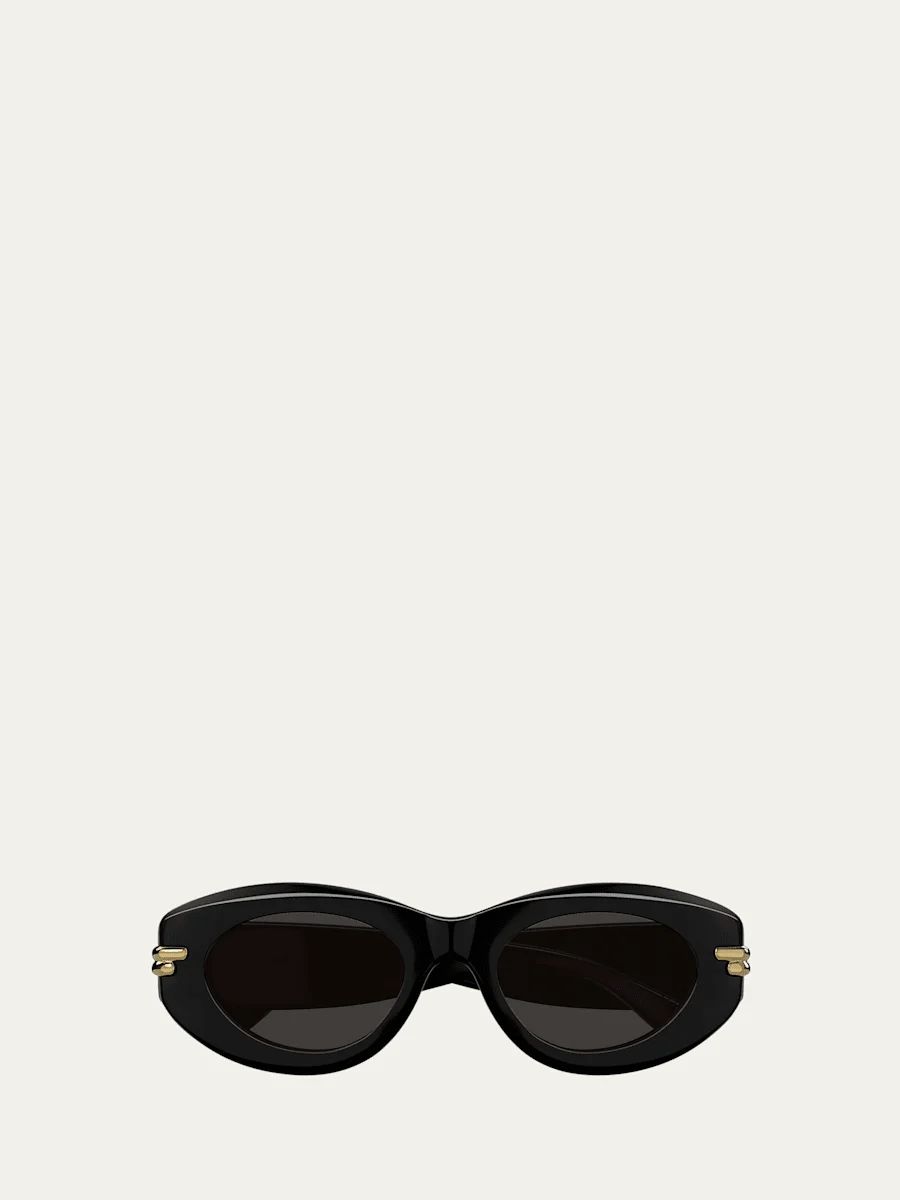 Bottega Veneta round sunglasses in acetate Lens/bridge/temple (in mm): 51-21-140 Solid-color lenses Wide, tapered arms 100% UVA/UVB protection Made in Japan Proposition 65 warning for California residents Online Inquiries: BGS21_D508R| Store Inquiries: #4869398