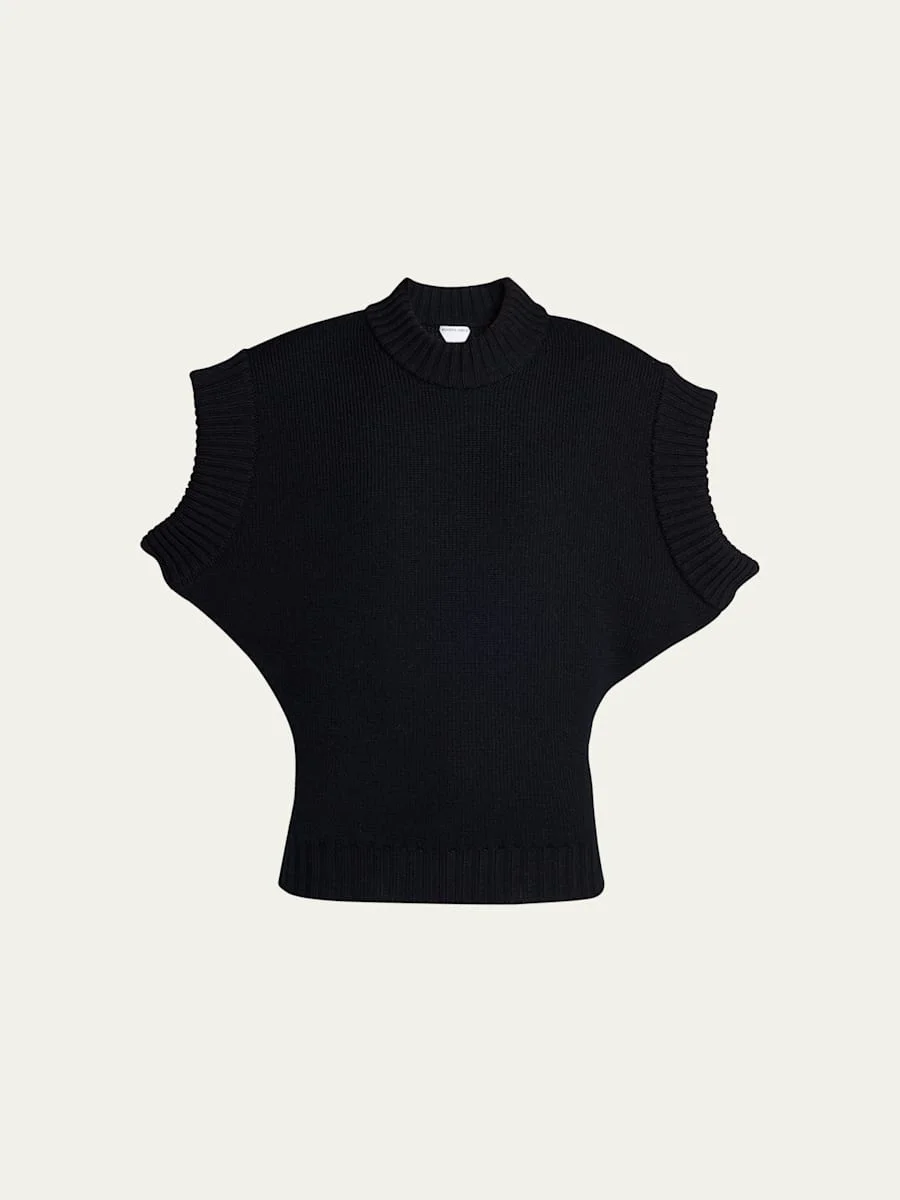 Bottega Veneta knit sweater with ribbed trim Crew neckline Short sleeves Slim fit Pullover style Wool Made in Italy Model is 5'10"/177cm. Online Inquiries: BGS21_B9GUC| Store Inquiries: #4873231