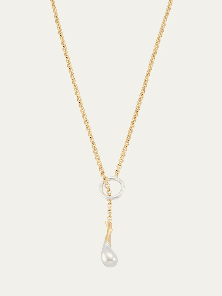 The toggle clasp creates a Y shape for this Bottega Veneta necklace. Necklace length: approx. 15 inches Sterling silver and 18-karat gold plating Adjustable length Toggle clasp Made in Italy Online Inquiries: BGS21_Y7N15| Store Inquiries: #5032517