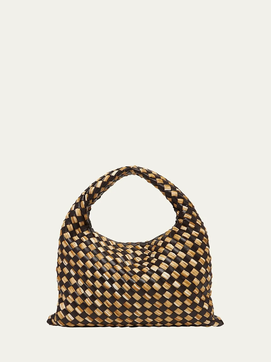 Bottega Veneta "Hop" top handle bag in intrecciato metallic leather Shoulder strap Open top with magnetic closure Approx. 8"H x 16.1"W x 3"D Made in Italy Online Inquiries: BGS21_V6661| Store Inquiries: #4746078