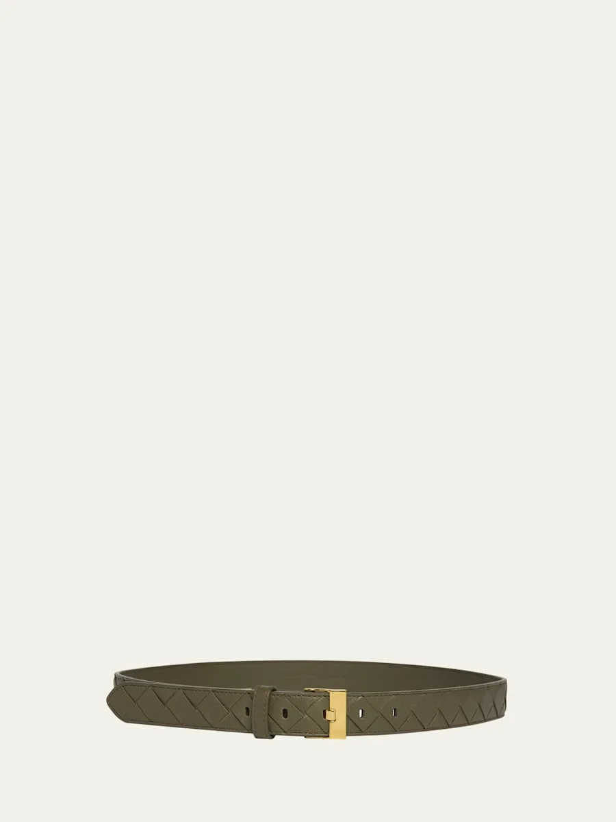 Watch-Buckle Intrecciato Leather Belt