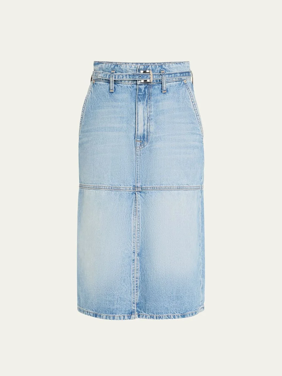 Cecilia Belted Denim Midi Skirt