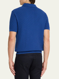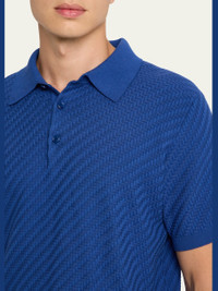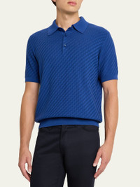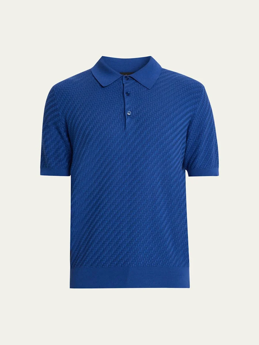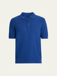 Brioni polo sweater features a basketweave stitched pattern Spread collar; three-button placket Short sleeves Ribbed cuffs and hem Pullover style Classic fit Cotton Made in Italy Model is 6'1"/185cm. Online Inquiries: BGS21_NBU26| Store Inquiries: #4458855