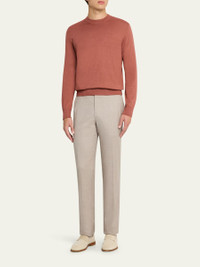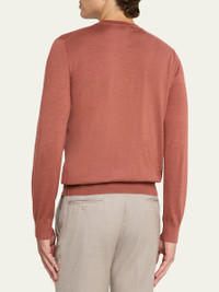 Brioni heathered crewneck sweater Crew neckline Long sleeves Ribbed cuffs and hem Subtle logo plaque at hem Classic fit Pullover style Cashmere/silk Made in Italy