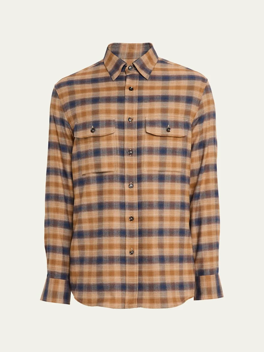 Men's Cotton Flannel Plaid Button-Down Shirt