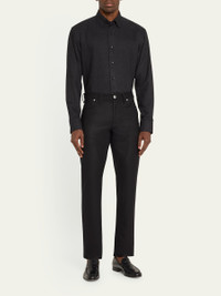 Brioni "Meribel" pants in solid wool flannel twill Regular rise Flat front Five-pocket style Straight legs Full length Button-zip front; belt loops Slim fit through the hips and thighs Wool Made in Italy Model is 6'1"/185cm. Online Inquiries: BGS21_NC6E6| Store Inquiries: #4814314