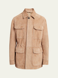 Brioni field jacket in lambskin suede Spread collar Long sleeves; button cuffs Front flap pockets Internal drawcord waist Mid-length Classic fit Front zip/button placket Leather Dry clean Made in Italy Online Inquiries: BGS21_NCRD6| Store Inquiries: #4935507