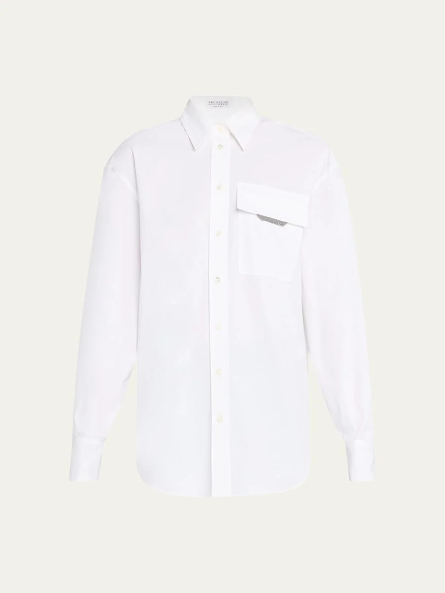 Button-Front Poplin Shirt with Monili Pocket