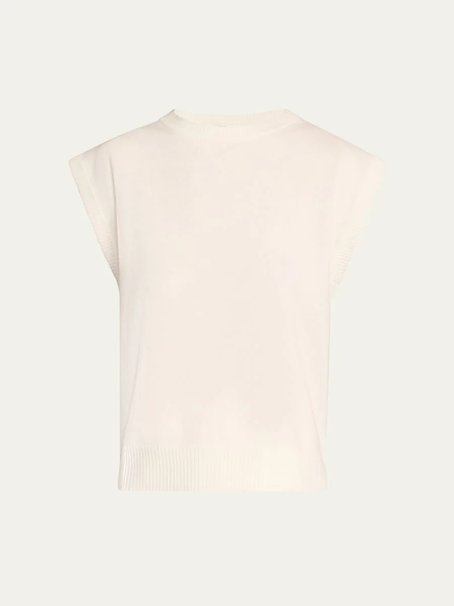 Brunello Cucinelli knit sweater with ribbed trim Crew neckline Cap sleeves Relaxed fit Pullover style Cashmere Dry clean Made in Italy