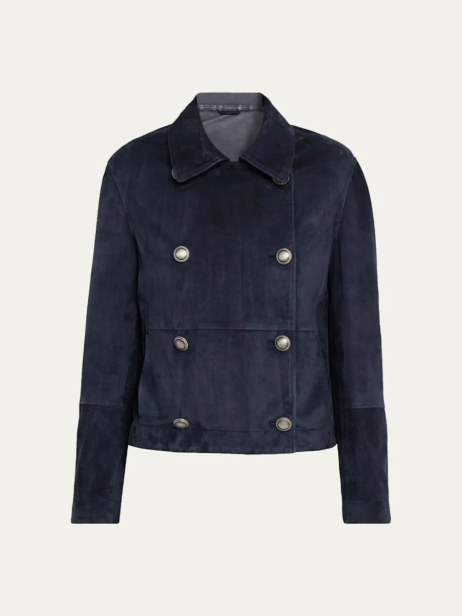 Couture Suede Double-Breasted Short Trench Jacket