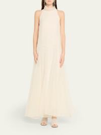 Crispy Silk Chiffon Drop-Waist Sleeveless Maxi Dress