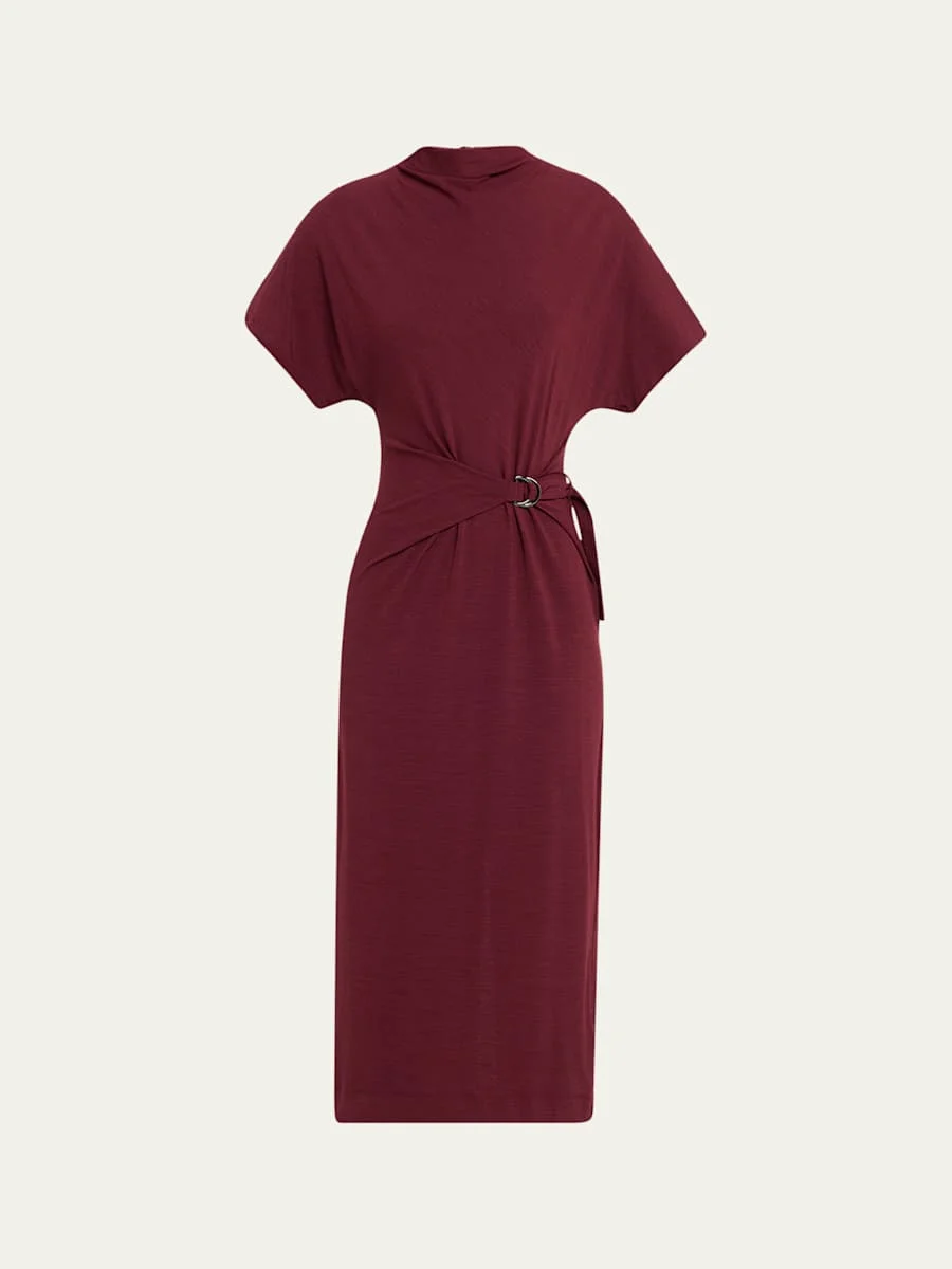 Drape Short-Sleeve Wool Jersey Midi Wrap Dress