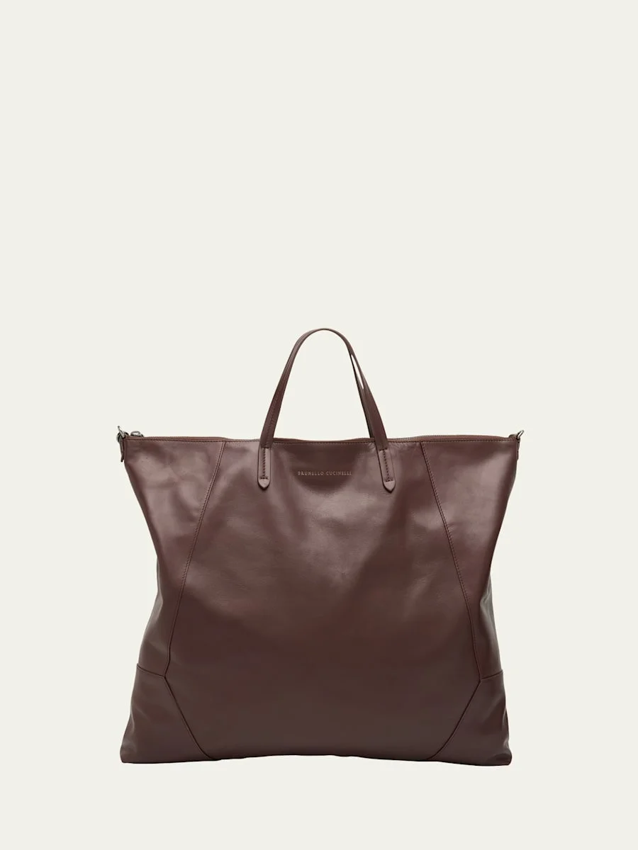 Brunello Cucinelli "Duo" shopper shoulder bag in calfskin leather Top handles Detachable, adjustable shoulder strap Can be worn as a top handle or shoulder bag Zip top closure Interior, one zip pocket Approx. 16.9"H x 19.6"W x 1.9"D Made in Italy
